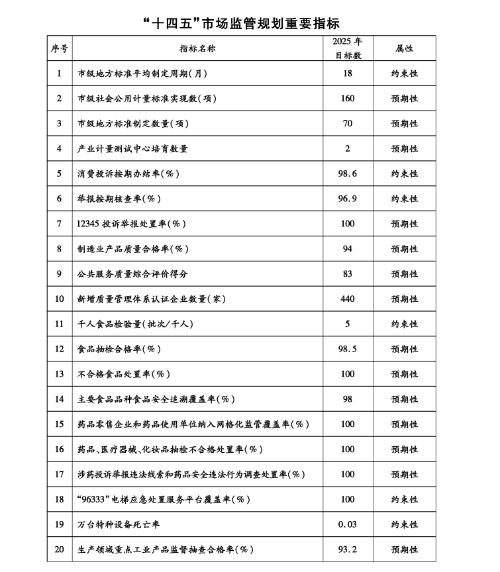 到2025年,建立健全與我市經濟社會發展相適應、與高標準市場體系相匹配、統一規范、權責明確、公正高效的市場監管體系,初步實現市場監管治理體系和治理能力現代化。具體目標是:
